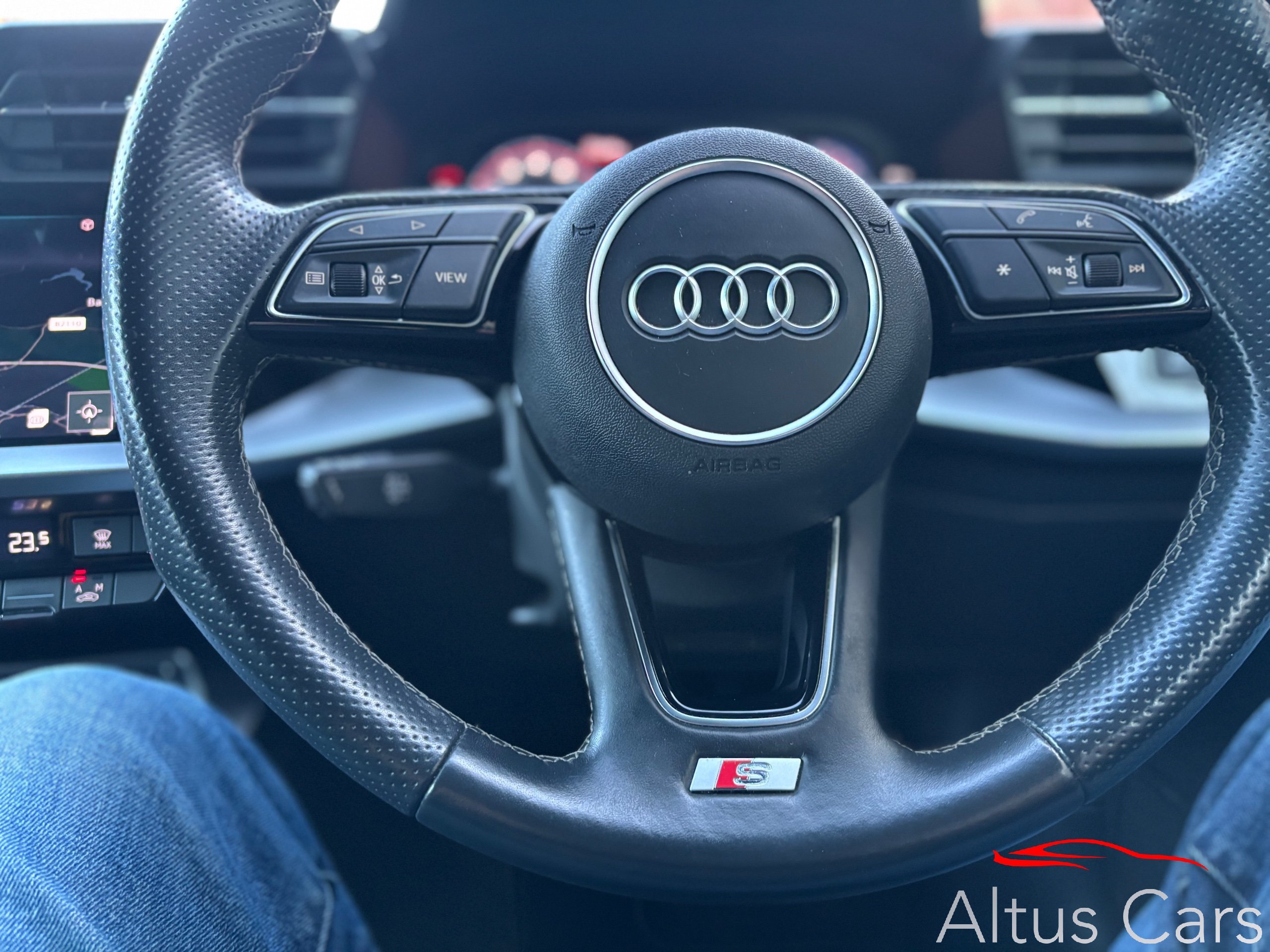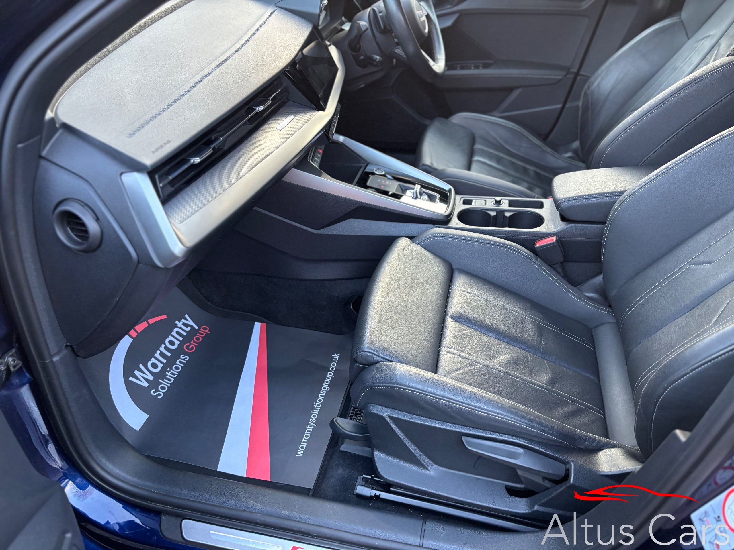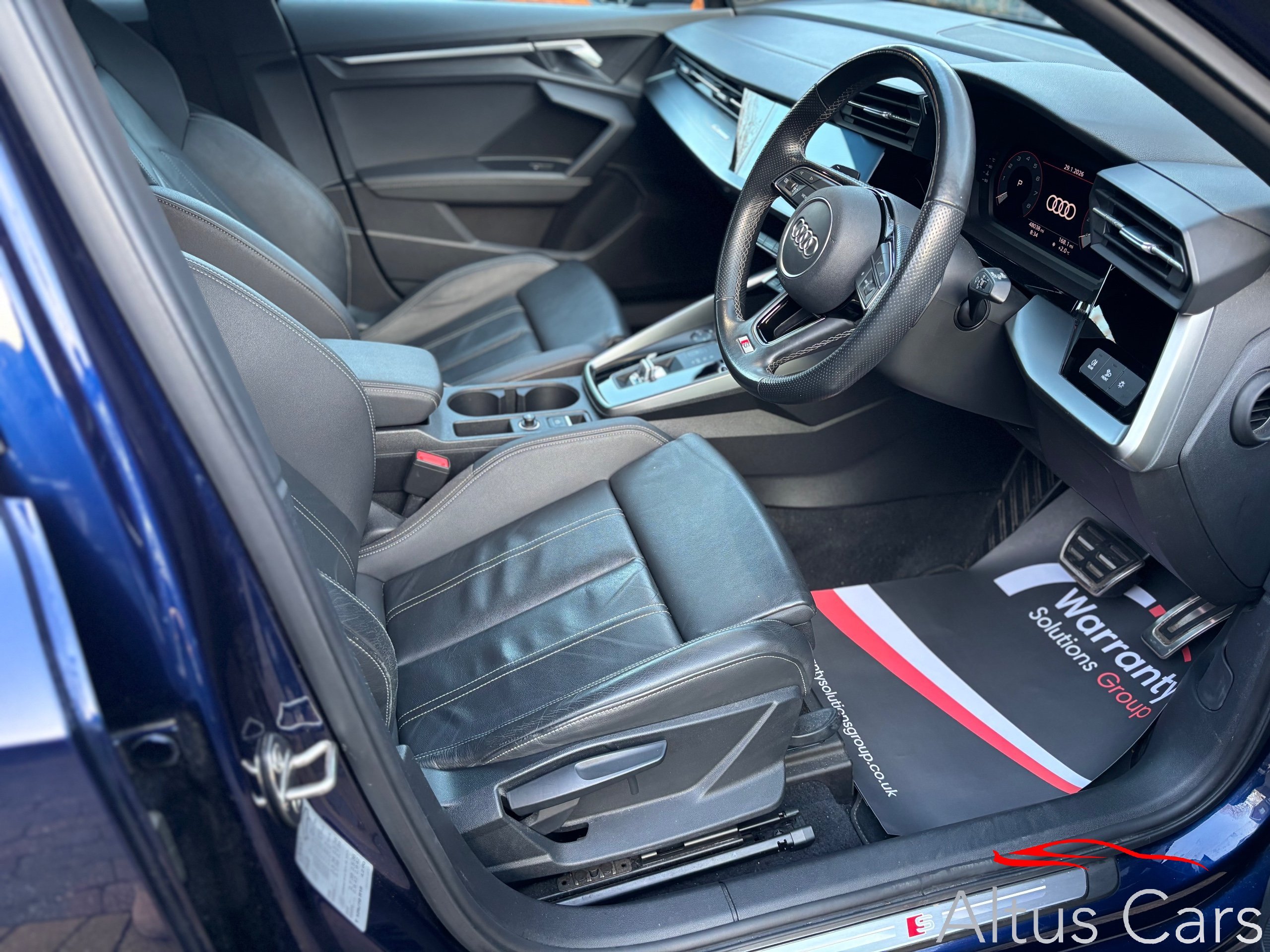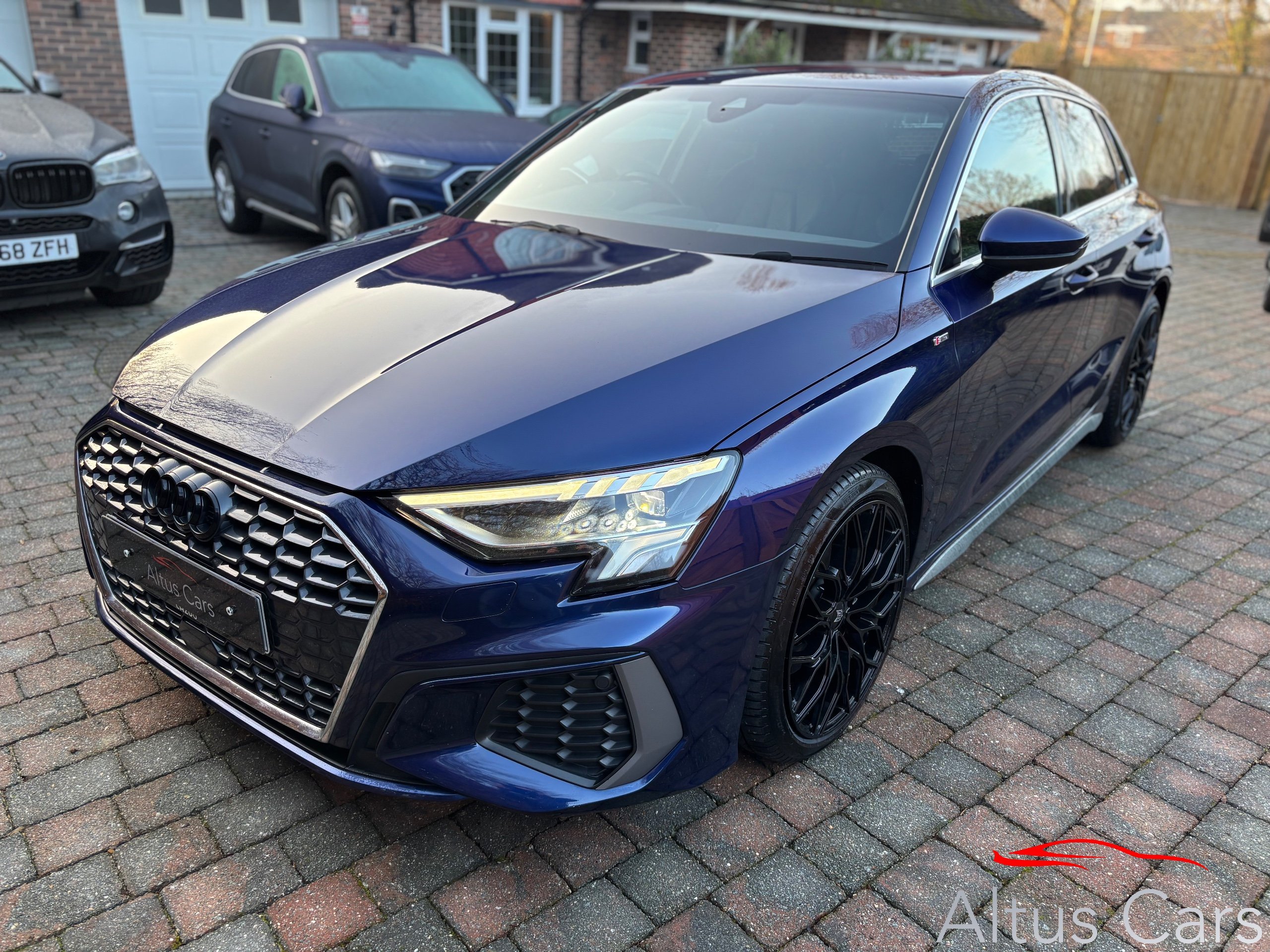 Stunning Navarra Blue 2021 Audi A3 1.5 TFSI 35 S line Sportback 5dr Petrol S Tronic Euro 6 (s/s) (150 ps) 48,000 miles, Full Audi Service History, 18" Multi-spoke black alloys, Virtual Cockpit, Full Black Leather interior, Rear parking sensors, Cruise control, Light and rain sensors, Lane departure warning, Sat nav, Audi Smartphone Interface, Audi connect emergency call & service, MMI Radio plus, Sport seats in Twin Leather with S embossing for sport seats, Privacy glass, LED Interior Lighting Pack, DAB digital radio, 3-spoke leather multi-function steering wheel with gear-shift paddles for S tronic transmission, Lane departure warning, Exterior mirrors electrically adjustable, heated and folding, automatically dimming on both sides, MMI Navigation Plus with high-resolution 10.1" touch screen, colour display, Rear parking sensors, LED headlights with LED rear lights and dynamic rear indicators, Audi pre sense front, Separate daytime running light, Light and rain sensors, Cruise control, LED rear combination light, dynamic turn signal, Dual-zone electronic climate control,