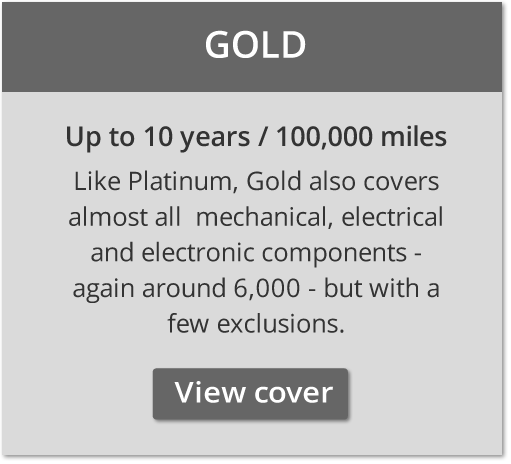 Platinum and Gold both cover around 6,000 mechanical, electrical and electronic components including many that are normally excluded by other warranty companies. Silver covers a range of listed items and is designed with the older or higher mileage vehicle in mind.